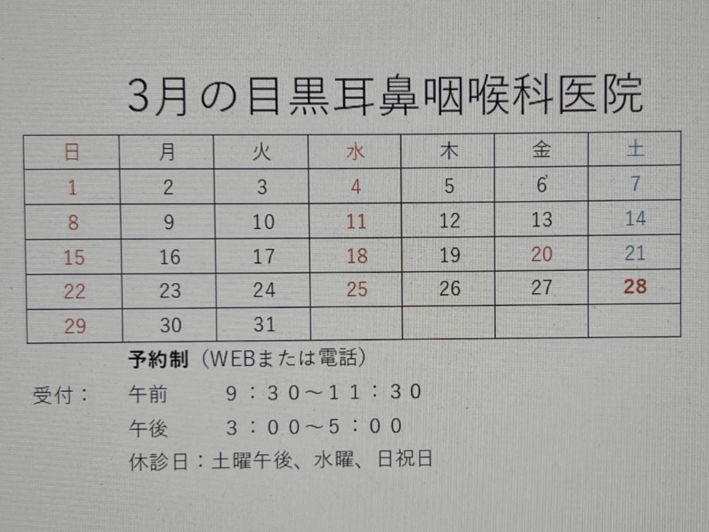 3月28日土曜日は臨時休診です。